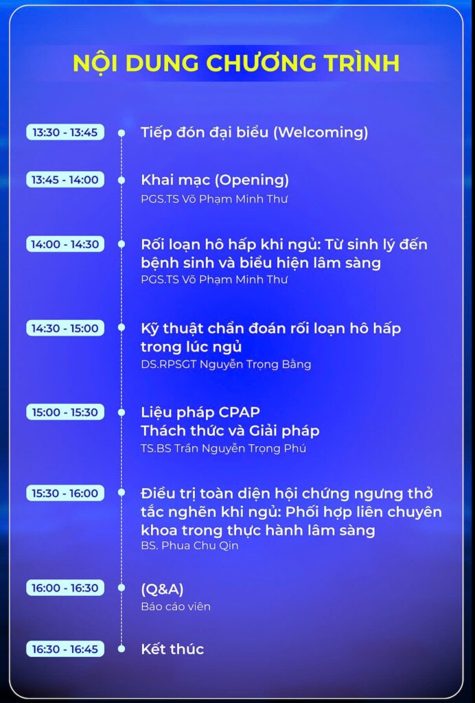 Thông qua các bài báo cáo chuyên sâu, chương trình giúp người tham dự có cái nhìn hệ thống từ chẩn đoán đến điều trị, đồng thời cập nhật các xu hướng mới trong lĩnh vực y học giấc ngủ.